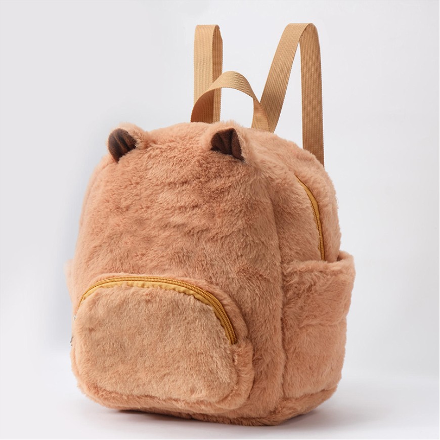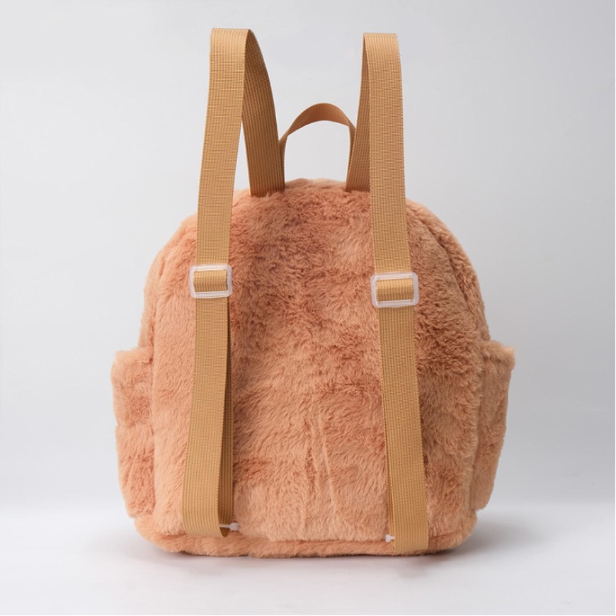 This children's backpack features a soft plush design, offering a comfortable feel and a cute, playful look that children will love. The top of the backpack is adorned with fun ear decorations, adding a touch of cuteness and making it more personalized and fun for children to wear to school or on outings. The backpack has practical side pockets for storing water bottles, umbrellas, or small items, allowing for easy access and helping children keep their belongings organized. The shoulder straps are adjustable, allowing for customization based on the child's height and build, ensuring a comfortable fit that conforms to the back's curves and distributes weight evenly, enhancing overall comfort.
