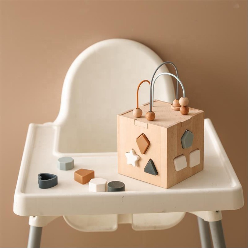 This activity cube puzzle toy combines shape sorting and movable beads, providing children with a diverse early learning experience. The shape sorting module, through matching various geometric shapes, helps children improve their cognitive abilities, logical thinking, and hand-eye coordination through observation and manipulation. The movable bead design encourages children to freely slide and combine the beads, exercising finger dexterity and fine motor skills, while also enhancing concentration and creativity. The overall design features a sturdy and safe wooden structure with rounded edges, vibrant colors, and a size suitable for children to grasp and manipulate. This allows children to comprehensively develop their hands-on abilities, cognitive skills, and spatial imagination through fun and engaging play.