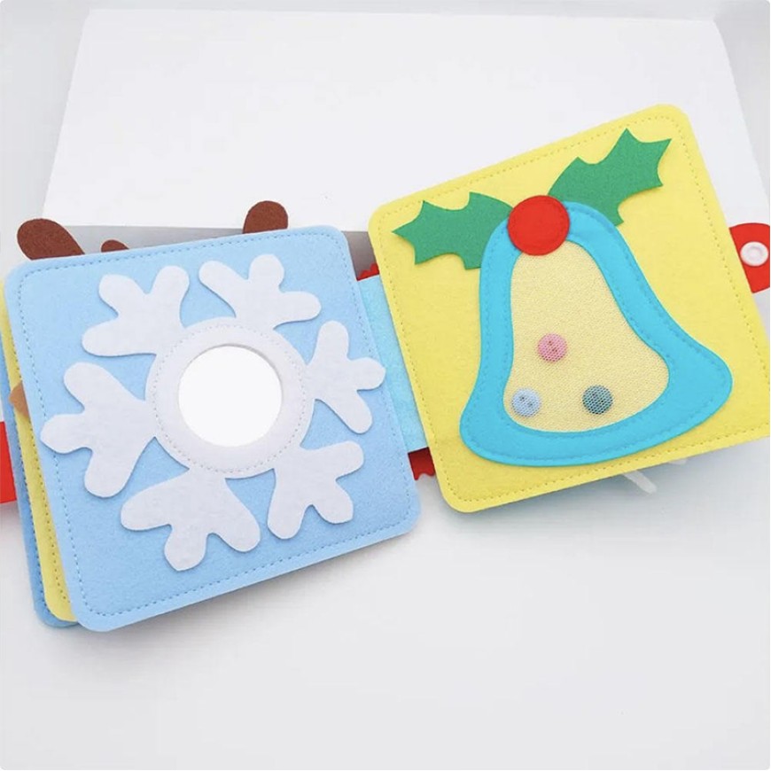 This felt busy board is made of soft and durable felt material, which is safe and environmentally friendly, and designed for early intellectual and hands-on skills training for children. The product features various interactive elements such as snaps, buttons, and Velcro, allowing children to exercise finger dexterity, hand-eye coordination, and fine motor skills through actions like snapping, pressing, and sticking. The diverse activities not only improve concentration and logical thinking but also help children learn daily life skills through play. Its lightweight and portable design makes it suitable for home early education, kindergarten enlightenment education, or for use while traveling, making it an ideal choice for children's intellectual development and life skills training.