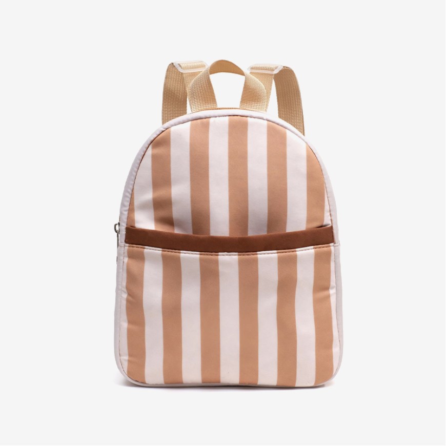 This children's backpack features a classic striped design, simple yet stylish, with fresh and vibrant colors, making it perfect for children's daily school use and outings. The main compartment has a smooth-operating zipper closure, allowing children to easily open and close it independently while effectively protecting books and personal belongings. The backpack also features practical side pockets on both sides, ideal for storing water bottles, umbrellas, or small items, keeping everything organized and easily accessible. The adjustable shoulder straps allow for flexible length adjustment based on the child's height and build, ensuring a comfortable fit that conforms to the back's curves, distributing weight evenly and enhancing overall comfort.